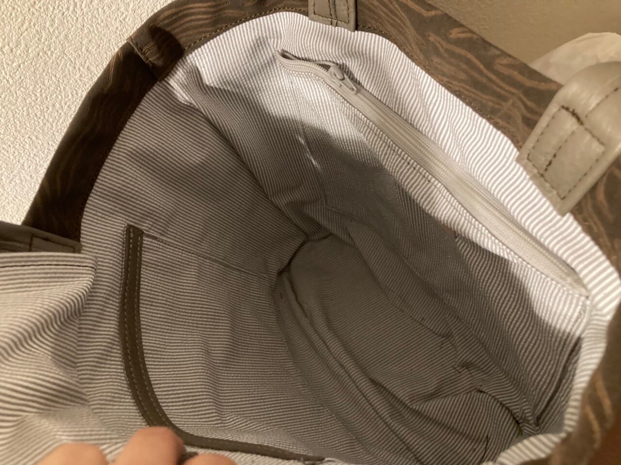 バッグの口には入れたものの上に被せることができる軽い蓋が付いています。
