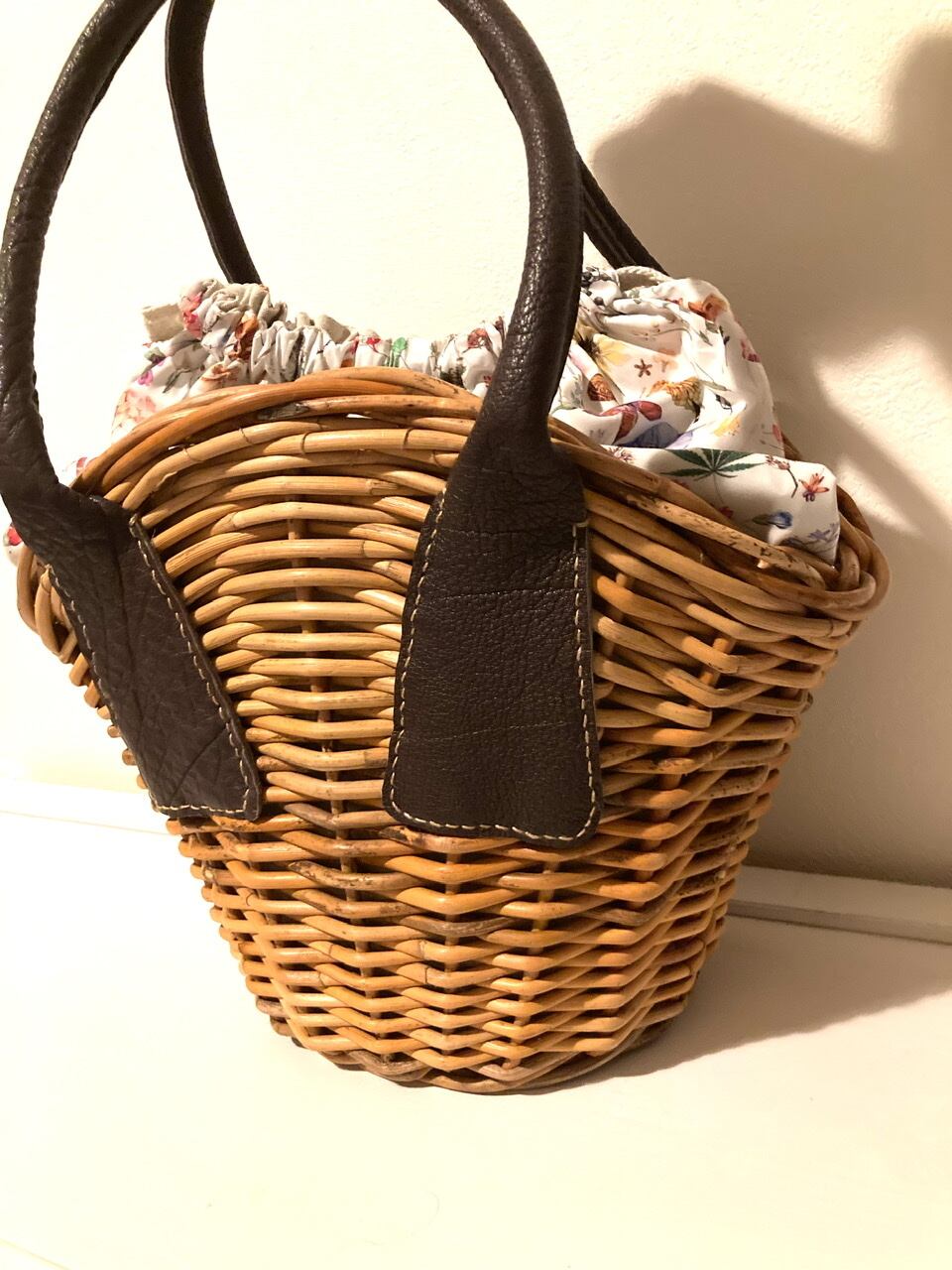 本体 籐(アラログ) 持ち手 牛革 内布 綿麻 巾着部 綿